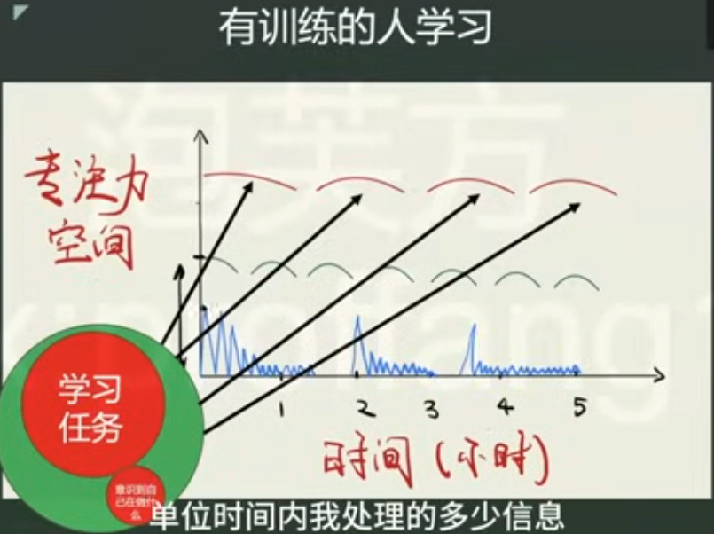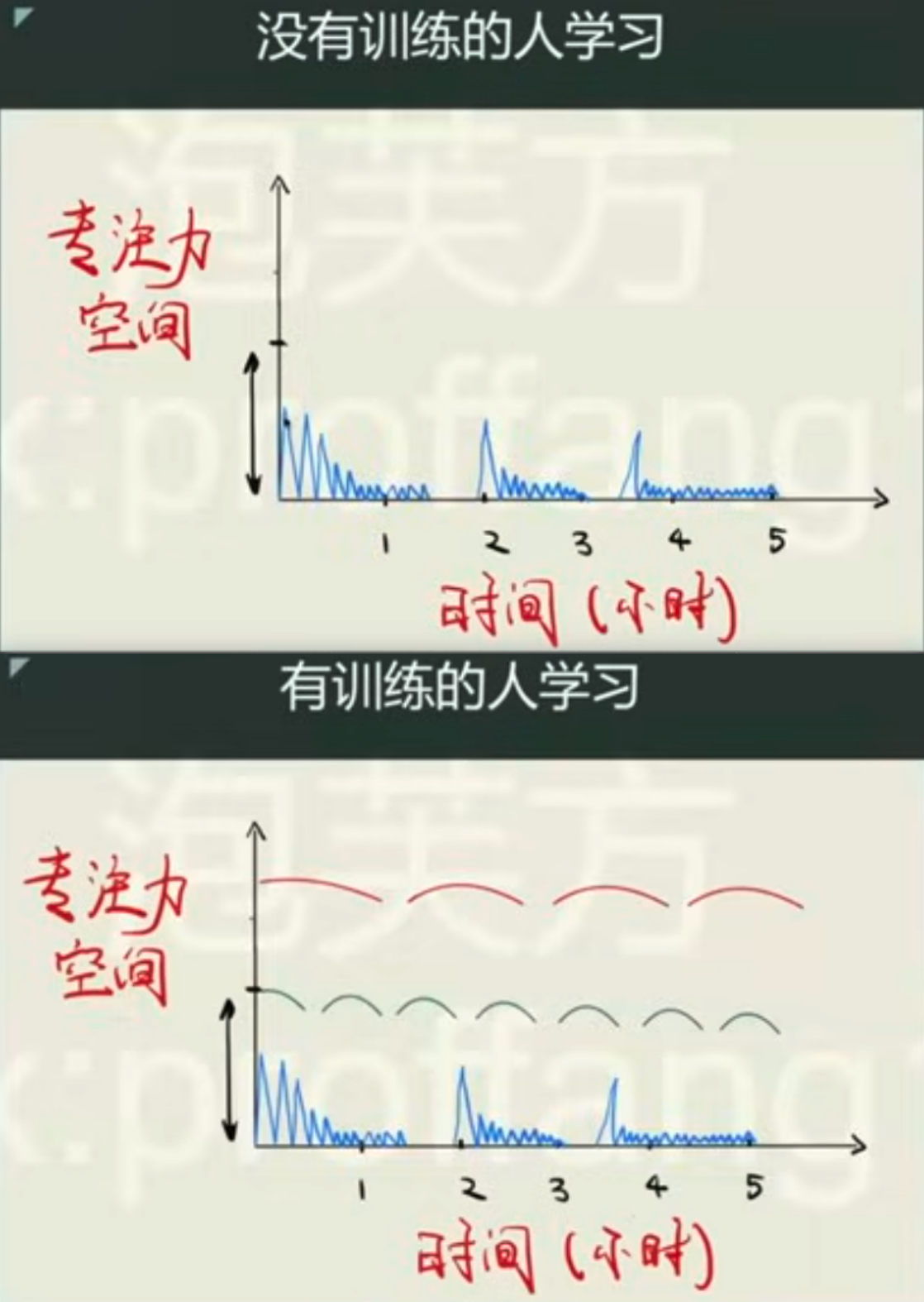 因为人的专注力空间是有限的,把要学习的内容或要完成的任务尽可能塞进这个空间让它尽可能满,然后同时要有个守卫,把那些不想要的搅扰信息赶出去,不让它们占据你的注意力空间,这就是所谓的最高效的学习上限。