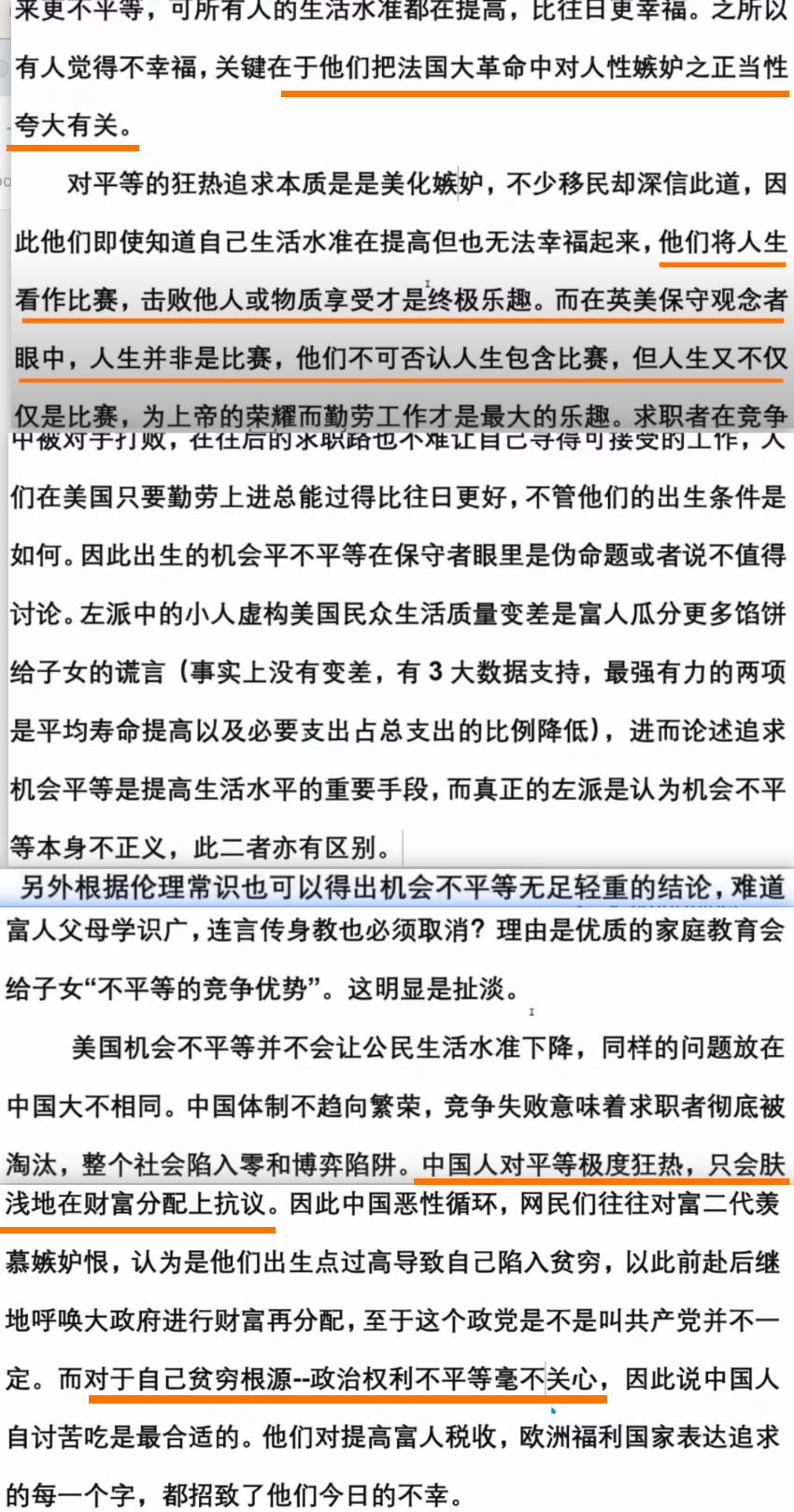 另类乌托邦机会均等 28 January 2024 另类乌托邦——机会均等 最能欺诈世人的平等——机会均等。 对平等的狂热追求本质是美化嫉妒,受儒家文化影响下的中国人爱将人生看作比赛,击败他人或对世俗世界里物质的享受才是终极乐趣。 中国人对外人的邪恶,和中国人对家人的愚善,是一体的两面,只是同一个丛林社会体系中的不同分工。 —-> 参考:https://www.youtube.com/watch?v=ymxwZW6xwFk