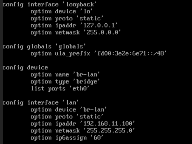 vi etc/config/network, 将 config interface ‘lan’ 下的 ipaddr 改到对应的网络。