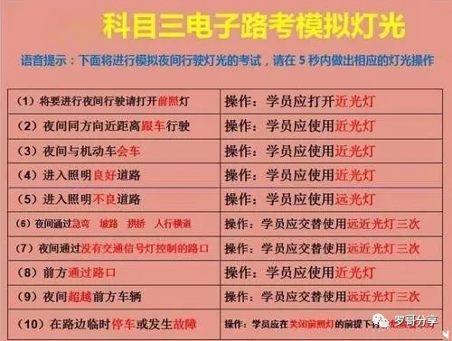 驾考科目三灯光表(附长沙市天心大托考场线路图) 16 August 2020 驾考科目三灯光表(附长沙市天心大托考场线路图) 注:考场线路图仅供参考,考试以现场实际线路为准。 以下是C2自动挡考试灯光表: 以下是C1手动挡考试灯光表: 附:长沙市天心大托考场线路图