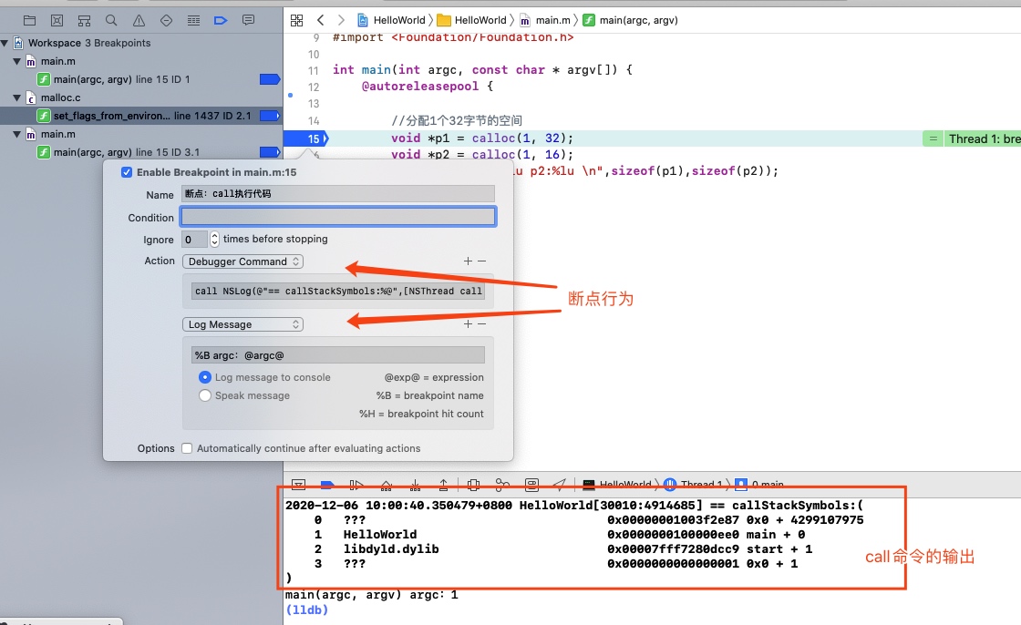 breakpoint list:列出所有断点信息,可简写br l;br disable 1禁用第1个断点;br del 1删除第1个断点;thread list:列表所有线程列表,可简写th l;thread return:立即执行返回命令,跳出当前栈帧,如thread return NO;b ptrace:列举模块;call [NSThread callStackSymbols],获取堆栈符号列表;image lookup: 查找定位在模块中的位置;加--address/a参数可以指定地址寻址定位代码位置;--name根据指定符号名查找;--type根据类型查找;target stop-hook:- 在每次 stop 的时候去执行一些命令;例如: