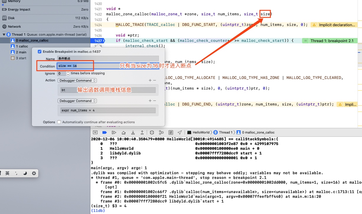 创建条件断点,并在断点时打印函数调用的堆栈信息