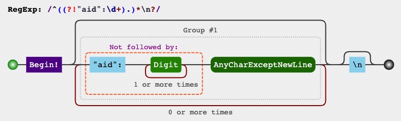 2. 使用 ^((?!"aid":\d++).)*+\n?+ 删除多余文本;